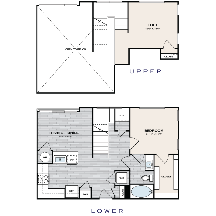 1 Dormitorio, 1 Baño, 810 pies²Disponible AhoraGalería del Modelo
