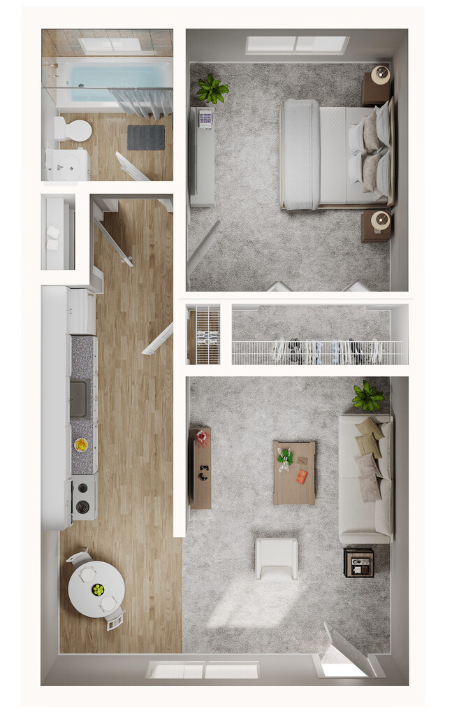 1 Dormitorio, 1 Baño, 517 pies²Disponible AhoraEl más grandeEsta opción tiene las unidades más grandes para este modeloGalería del Modelo