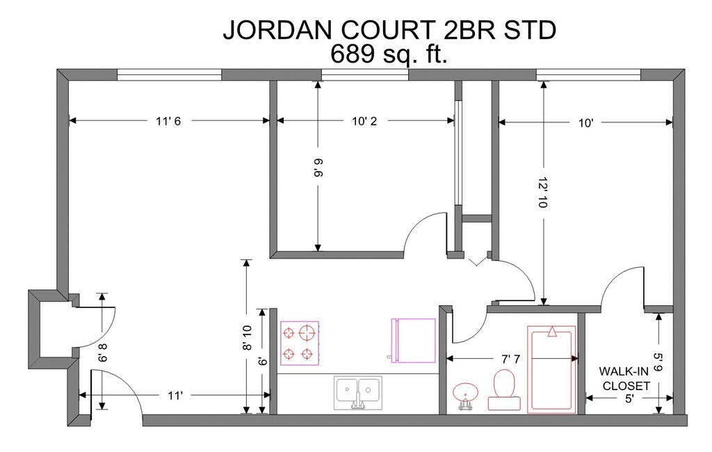Jordan Court 2 Bedroom Deluxe - Plano 1 2 Bedroom - 1 Bath