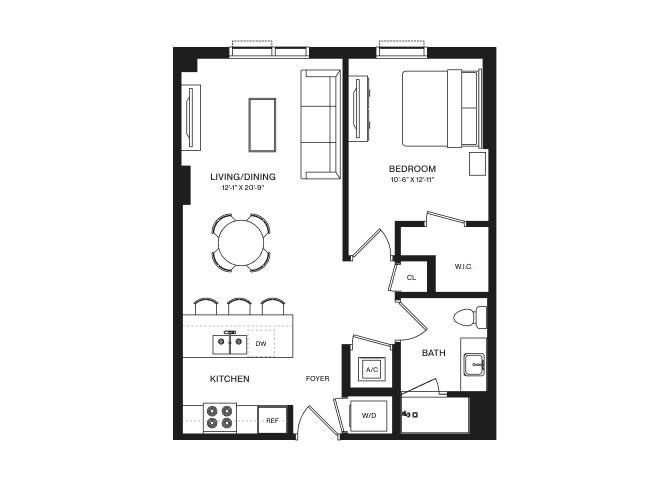 Estudio, 1 Baño, 467 pies²Disponible AhoraGalería del Modelo