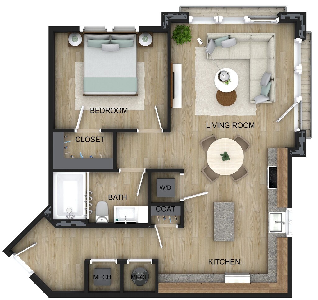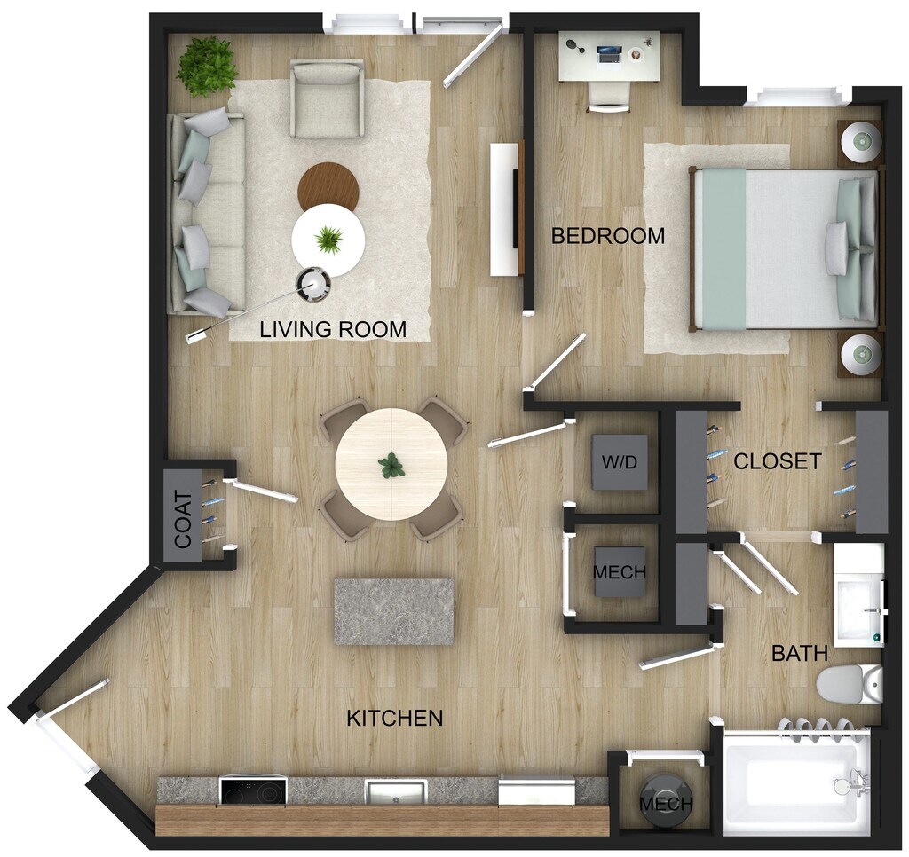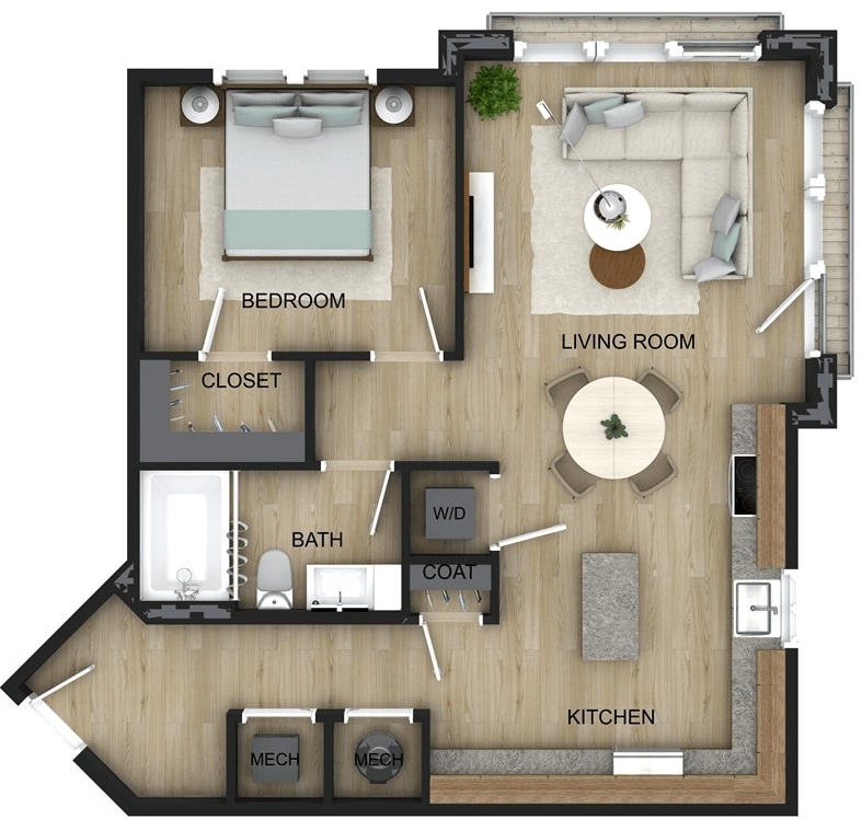 1 Dormitorio, 1 Baño, 746 pies²El más grandeEsta opción tiene las unidades más grandes para este modeloGalería del Modelo