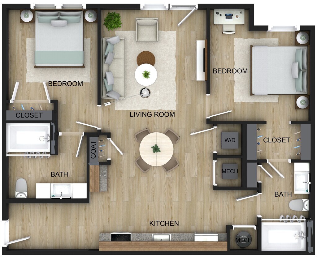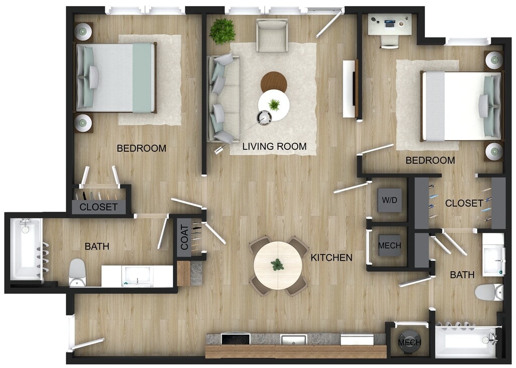 2 Dormitorios, 2 Baños, 911 pies²Galería del Modelo