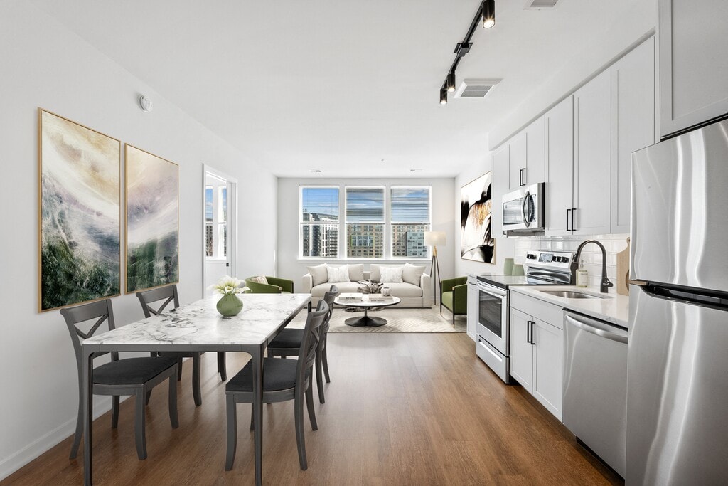 Judd & Weiler delivers modern apartment living in Eckington with two architecturally distinct buildings offering studio to three-bedroom layouts, including one- and two-bedroom homes with dens. Residences feature stainless steel appliances, stone countertops, wood-style flooring, full-size washers and dryers, walk-in closets, and kitchen islands, patios, or balconies in select homes. Oversized windows and thoughtfully designed interiors provide both light and flexibility. Community amenities include a rooftop lounge with panoramic views of the city, premium fitness center with a yoga studio, coworking and conference rooms, pet spa, game room, and more. Residents also enjoy a seamless experience through a convenient mobile app, providing access to community spaces, amenities, guest services, and maintenance requests, reflecting our dedication to innovative technology, elevated service standards, and community enjoyment.