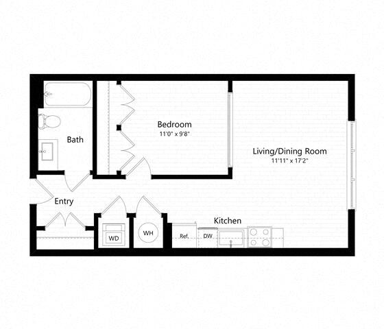 Studio | s03 - The Judd - Plano 3 Los planos son representaciones artísticas. Todas las dimensiones son aproximadas. El producto y las especificaciones reales pueden variar en tamaño o detalle. No todas las características están disponibles en cada vivienda en alquiler. Por favor, consulta con un representante para obtener más detalles.