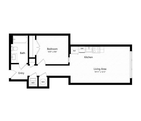 Estudio, 1 Baño, 430 pies²Disponible AhoraGalería del Modelo