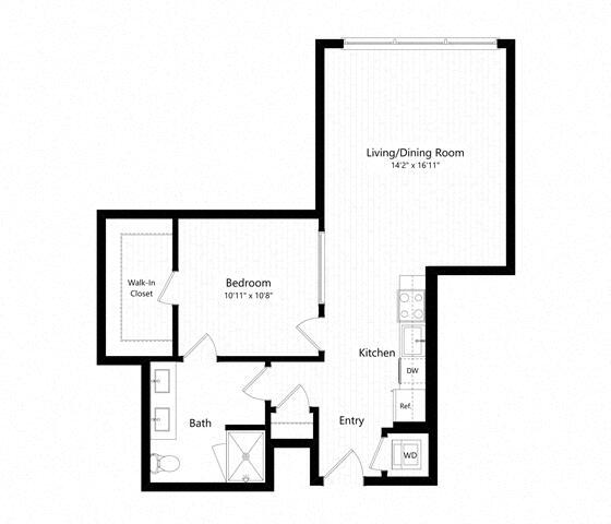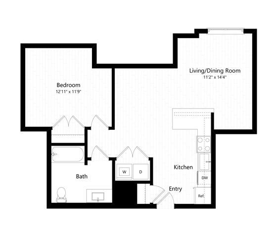 1 Dormitorio, 1 Baño, 590 pies²Disponible AhoraGalería del Modelo