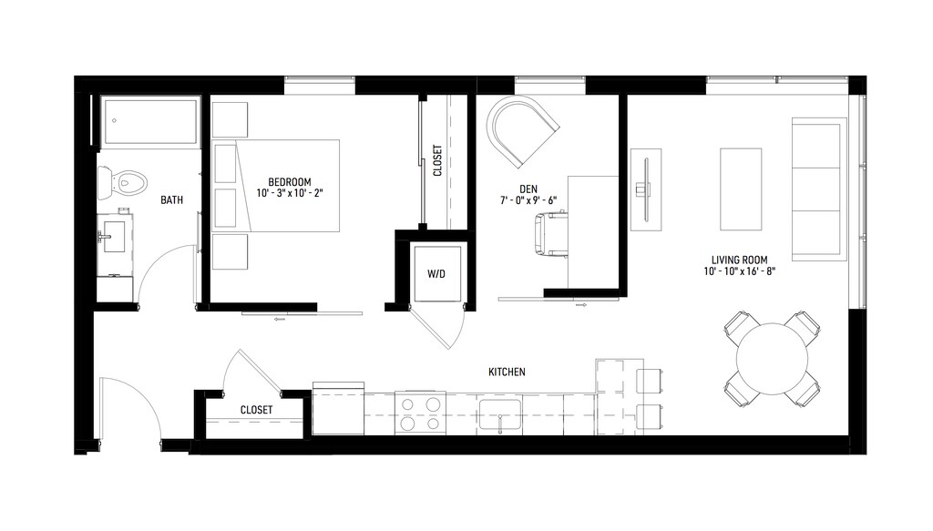 1 Dormitorio, 1 Baño, 650 pies²Precio Mensual TotalDisponible AhoraGalería del Modelo