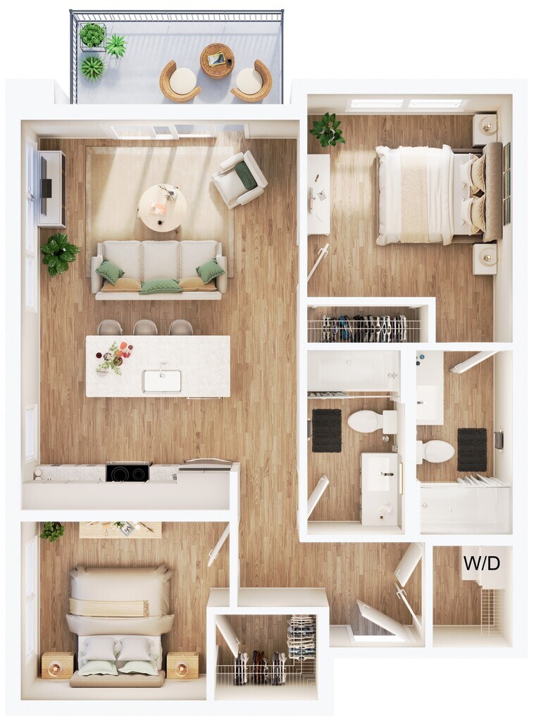 Beau - Plano 4 Unidad de apartamento: 406Modelo de apartamento: Beau$1,6141 Dormitorio, 1 Baño, 620 sq ftDisponible AhoraColibri