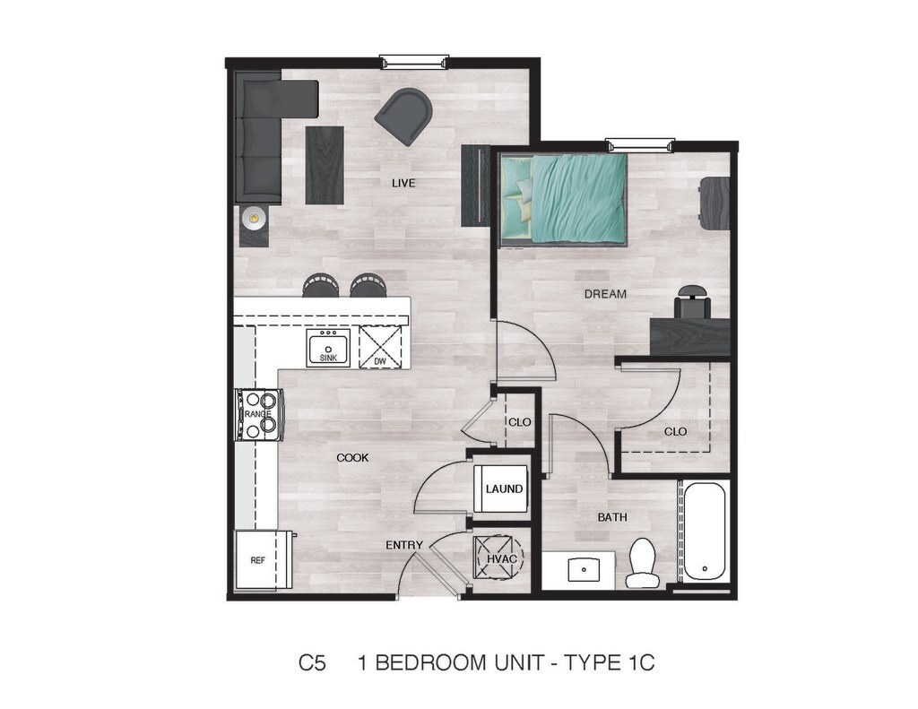 1 Dormitorio, 1 Baño, 501-513 pies²Disponible AhoraGalería del Modelo