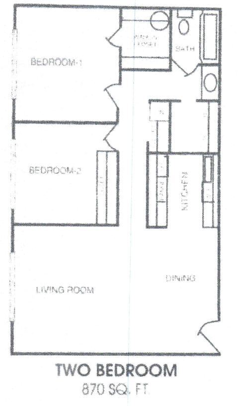 2 Dormitorios, 1 Baño, 870 pies²Disponible Dec 12Galería del Modelo