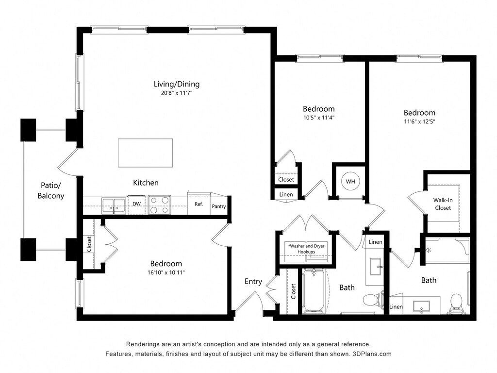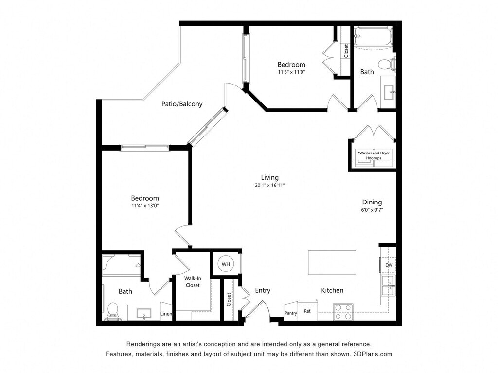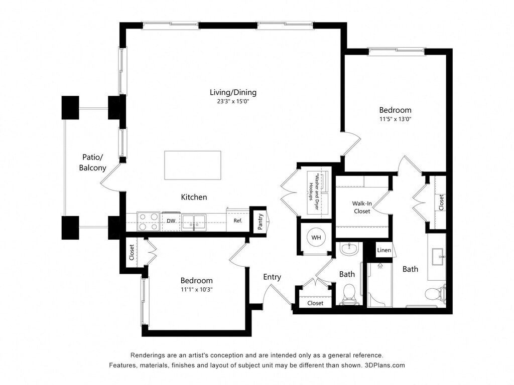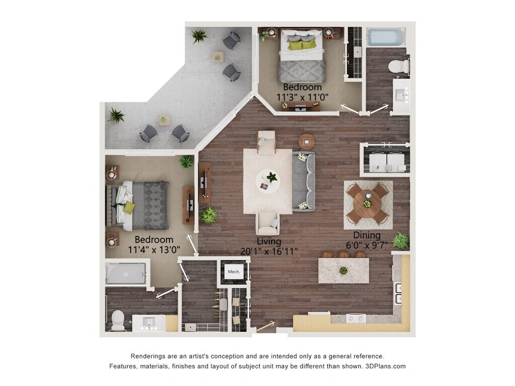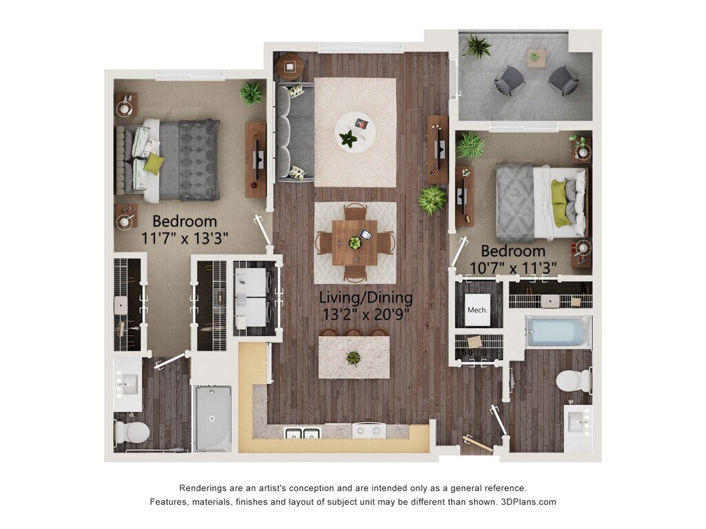 Modelo de apartamento: Two Bedroom - 2BDesde $1,4702 Dormitorios, 2 Baños, 925 sq ftDisponible January 1, 2026![]()