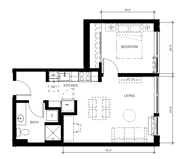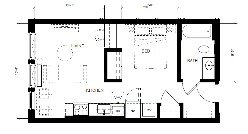 Estudio, 1 Baño, 452-476 pies²Disponible AhoraGalería del Modelo