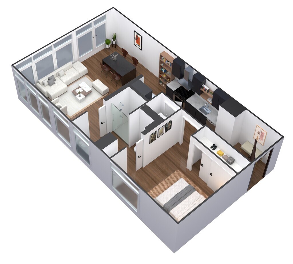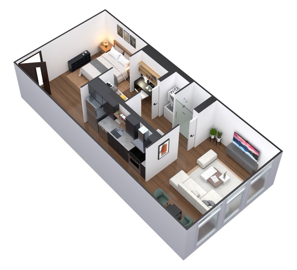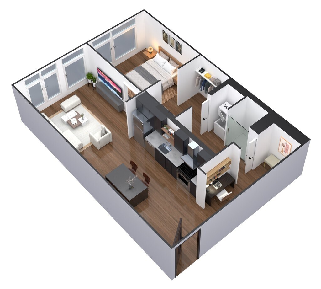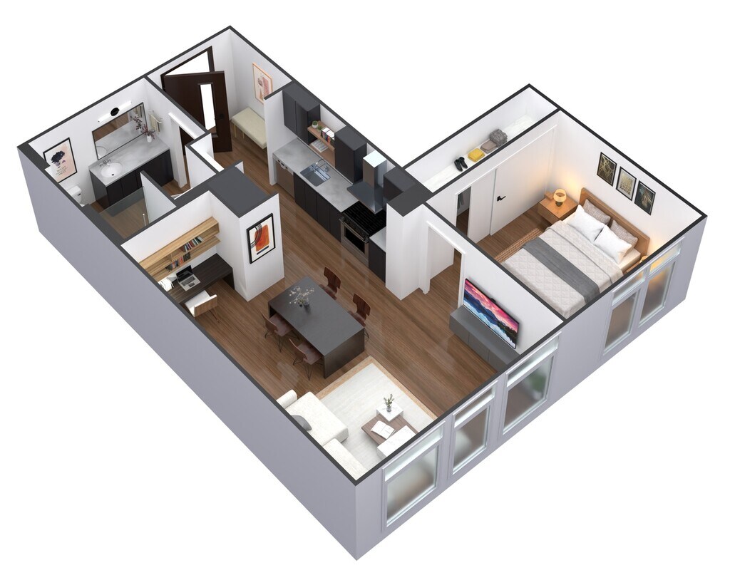 1 Dormitorio, 1 Baño, 670-671 pies²Disponible AhoraGalería del Modelo