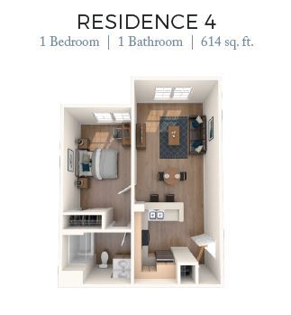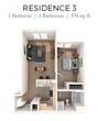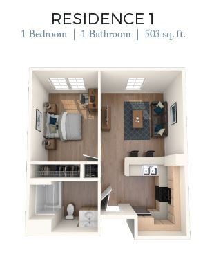 1 Dormitorio, 1 Baño, 518 pies²Disponible AhoraGalería del Modelo