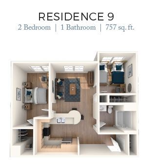 2 Dormitorios, 1 Baño, 737 pies²Disponible AhoraGalería del Modelo