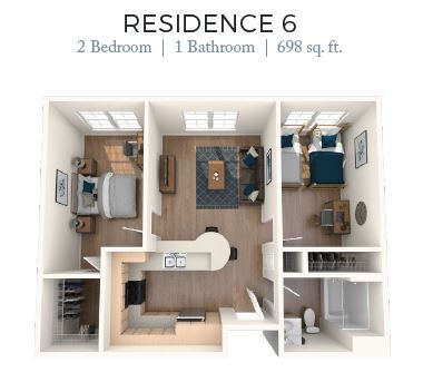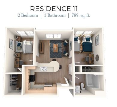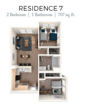 2 Dormitorios, 1 Baño, 707 pies²Disponible AhoraGalería del Modelo