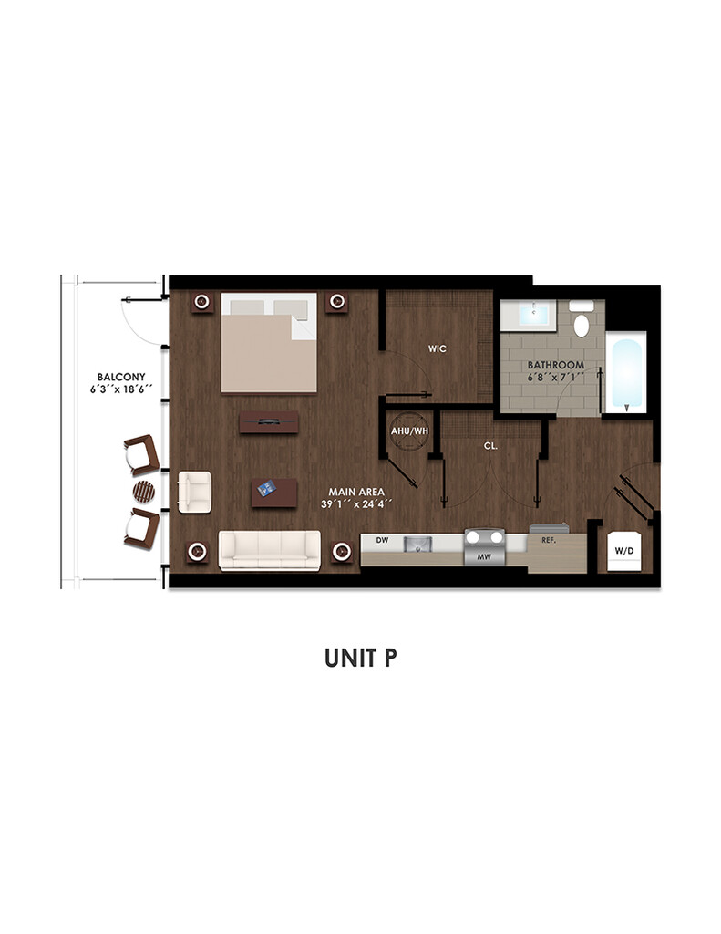 Estudio, 1 Baño, 579 pies²Disponible AhoraGalería del Modelo