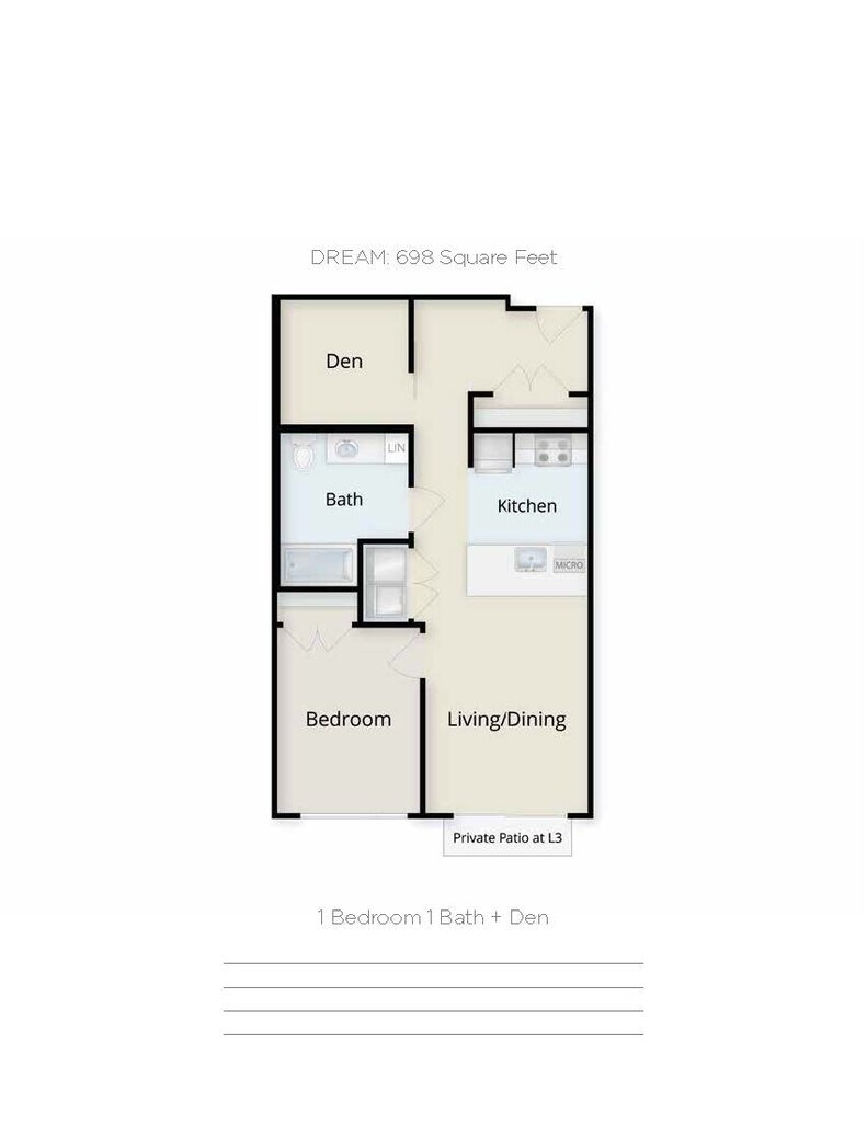 Modelo de apartamento: DreamDesde $2,1891 Dormitorio, 1 Baño, 721 sq ftDisponible December 7, 2025![]()