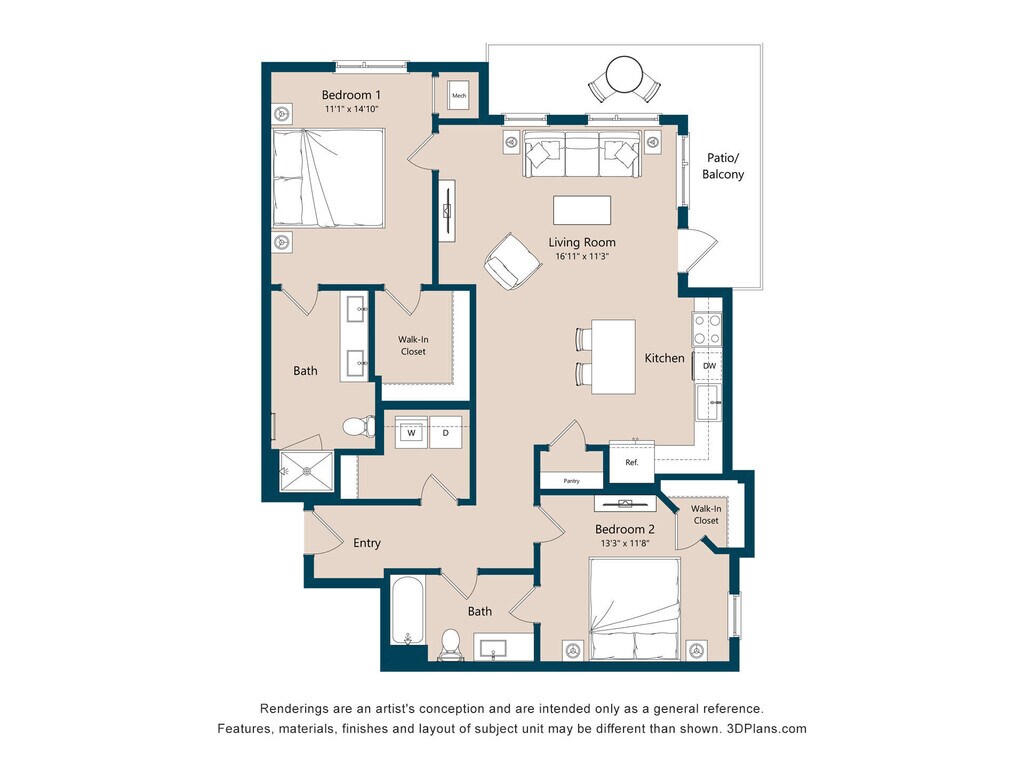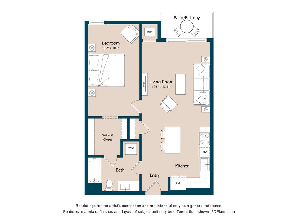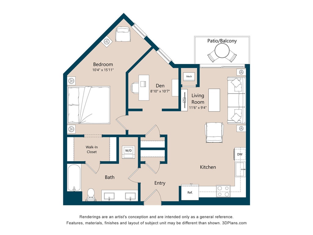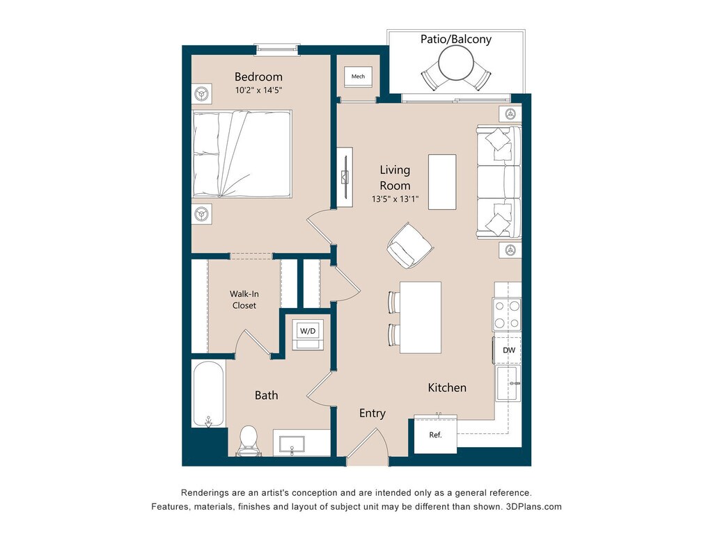 Estudio, 1 Baño, 588 pies²Galería del Modelo