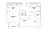 2 Bedroom 1 Bath Plan B - Plano 3 Dormitorios