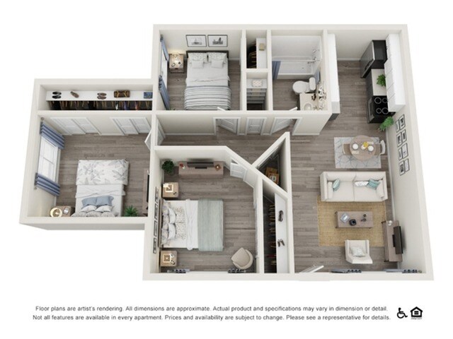 Modelo de apartamento: KaloTrio3 Dormitorios, 1 Baño, 844 sq ftDisponible Ahora![]()