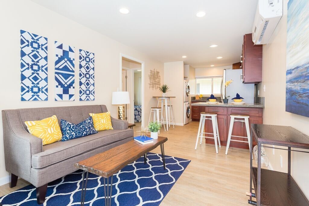 Estos apartamentos prácticamente nuevos y lujosos combinan lo mejor de la vida en apartamento con la cálida sensación de una vivienda unifamiliar. Se encuentran ubicados de manera segura detrás de una entrada privada a control remoto que le da paso a un espacio grande de hermosos paisajes donde los residentes disfrutan de la experiencia completa de vivir en una comunidad privada. Todos los apartamentos están amueblados con los últimos electrodomésticos de primera calidad e incluyen potentes máquinas de aire acondicionado 24.000BTU Fujitsu Split-Air, lavadoras y secadoras LG y refrigeradores/congeladores Samsung de apertura inferior. Nueva construcción, terminada a fines de 2016, significa que todo lo que hay en los apartamentos es prácticamente nuevo, incluyendo: cajones y gabinetes de cerezo oscuro que se cierran solos, pisos de vinilo de lujo, persianas personalizadas, lavabos de acero inoxidable, modernas duchas curvas y luces empotradas. Tuberías nuevas, calentadores de agua, cableado eléctrico, y luces LED, significa que los residentes deben esperar costos de energía más bajos como un beneficio adicional de vivir en estos apartamentos inspirados en Hawái. El complejo privado se encuentra a menos de media cuadra de dos parques del vecindario y está ubicado en una tranquila calle lateral que está a unas pocas cuadras del transporte público y a una poca distancia a pie desde la Universidad de Hawái en Mānoa y Waikiki. Comunícate con Oliver por medio de un correo electrónico o teléfono para concertar una cita para ver el complejo y programar un recorrido. Solo un apartamento está disponible para mudanza inmediata, pero apartamentos adicionales pueden estar disponibles para el alquiler en julio, así que asegúrate de preguntar ya que los apartamentos en alquiler se terminan rápido.
