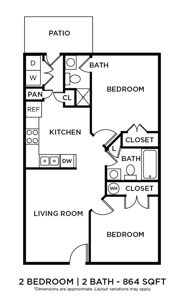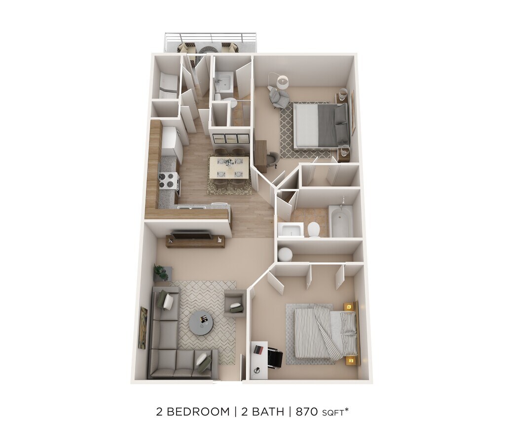 Two Bedroom- 870 sqft - Plano 1 Two Bedroom 2 Bath- 870 sqft