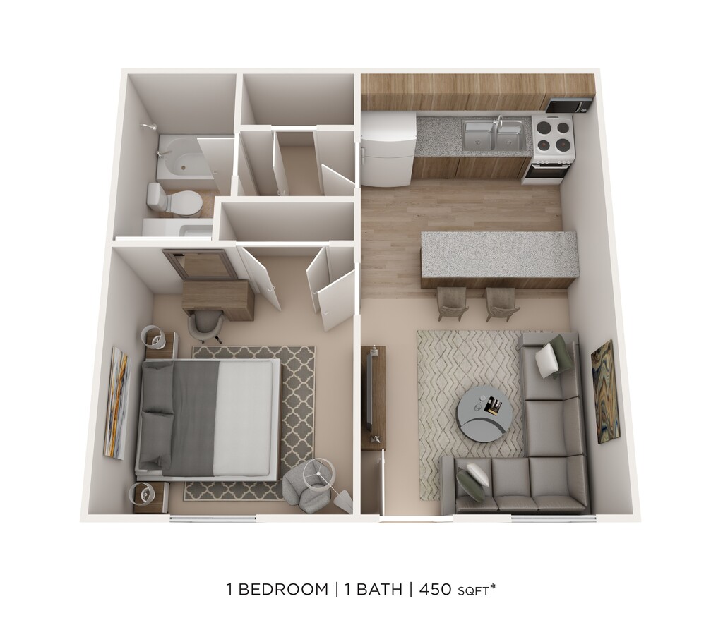 Estudio, 1 Baño, 450 pies²Disponible AhoraGalería del Modelo