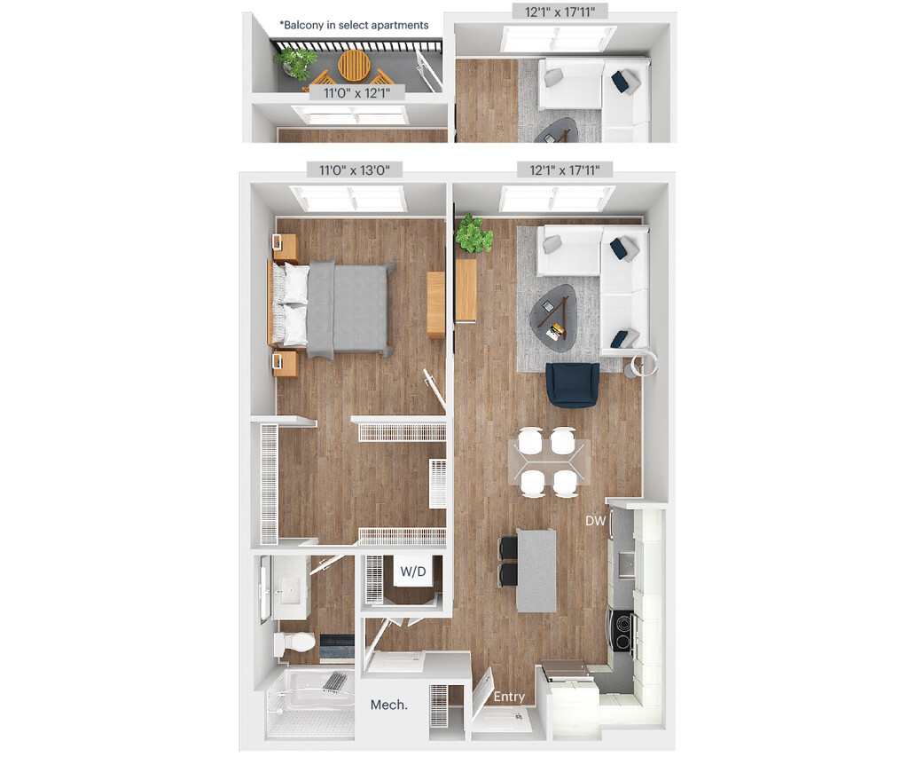Modelo de apartamento: AM12-720-722Desde $1,7601 Dormitorio, 1 Baño, 725 sq ftDisponible Ahora![]()
