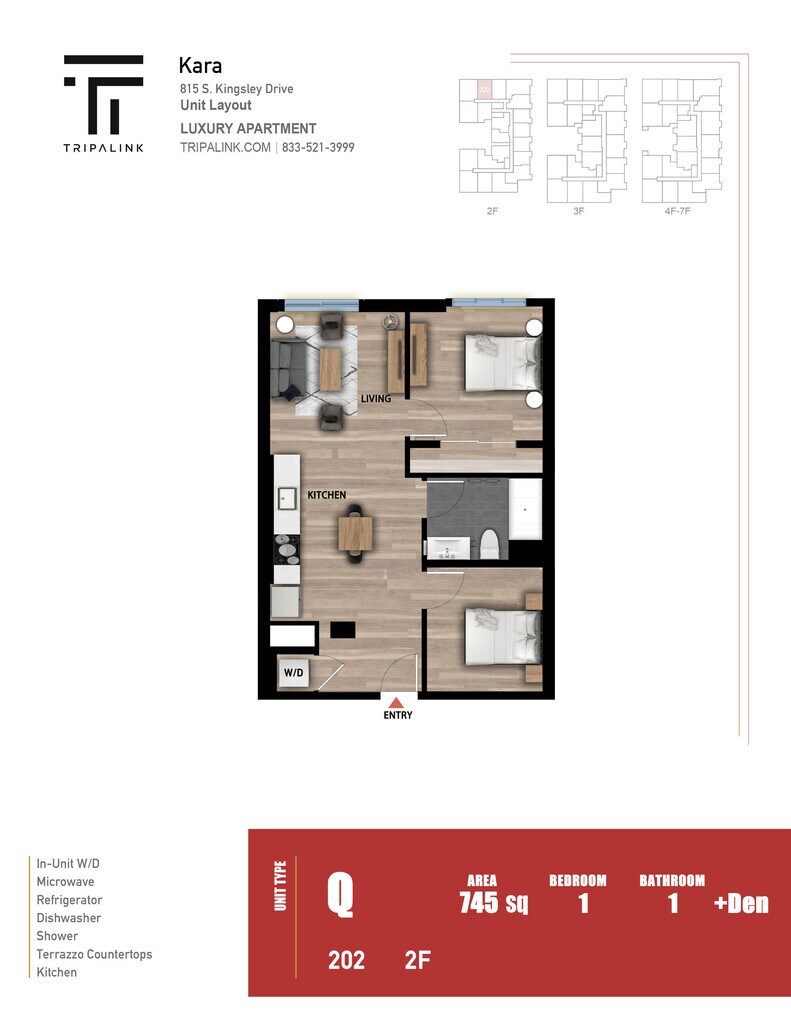 1 Bed 1 Bath +Den - 745 sqft - Plano 1 Unidad de apartamento: Unit 202Modelo de apartamento: 1 Bed 1 Bath +Den - 745 sqft$2,4011 Dormitorio, 1 Baño, 745 sq ftDisponible Ahora1 Bed 1 Bath +Den - 839 sqft