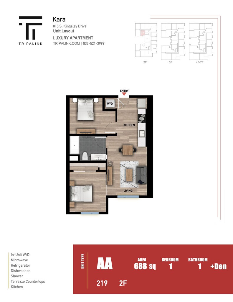 1 Bed 1 Bath +Den - 747 sqft - Plano 1 Unidad de apartamento: Unit 705Modelo de apartamento: 1 Bed 1 Bath +Den - 747 sqft$2,6001 Dormitorio, 1 Baño, 747 sq ftDisponible Ahora1 Bed 1 Bath +Den - 734 sqft