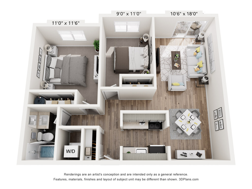 2 Dormitorios, 2 Baños, 850 pies²Galería del Modelo