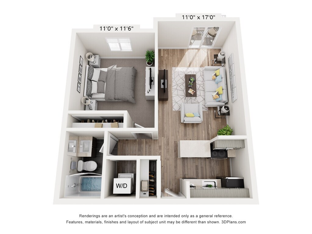 Estudio, 1 Baño, 520-650 pies²Galería del Modelo