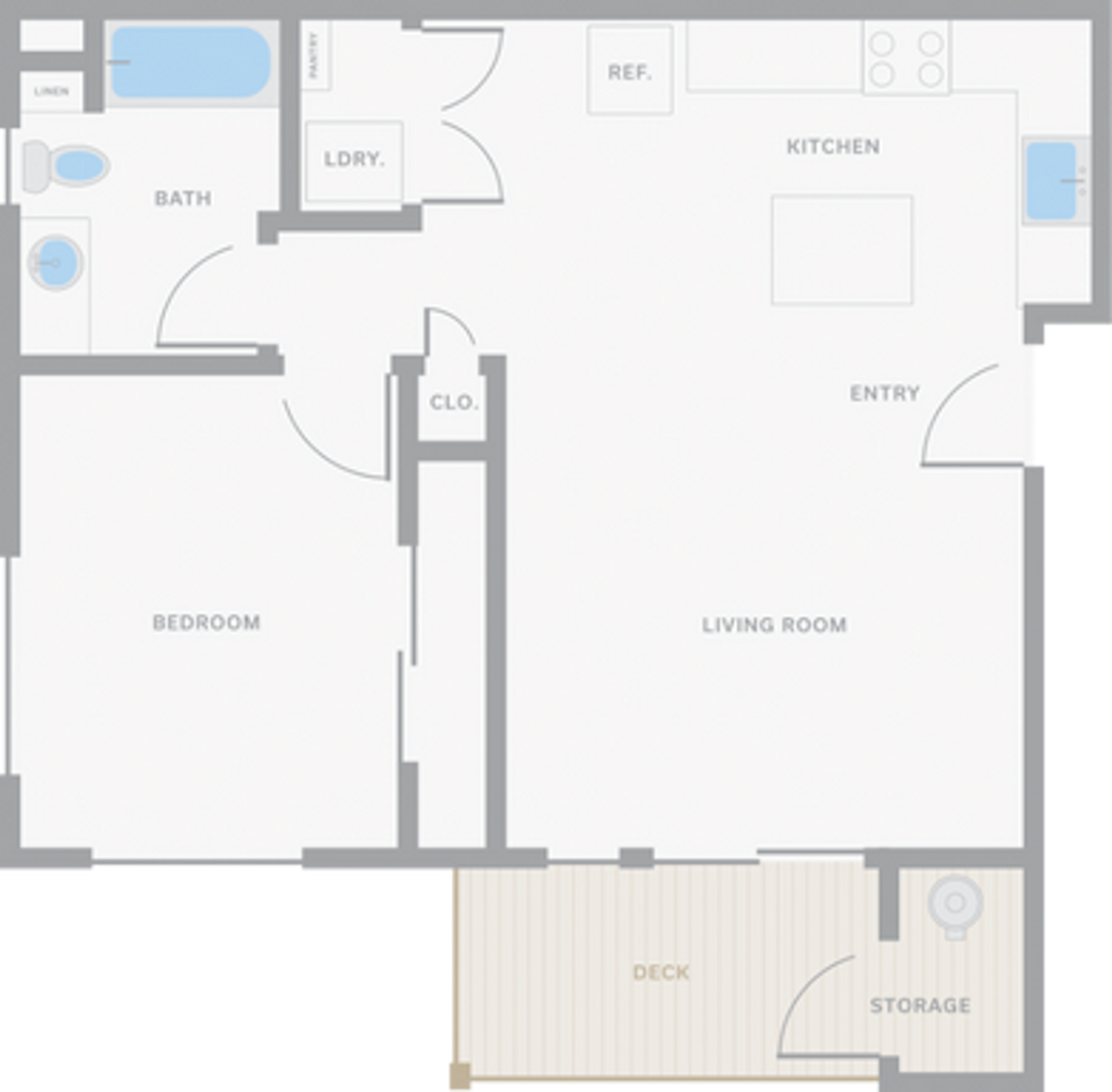 1 Dormitorio, 1 Baño, 690 pies²Disponible AhoraGalería del Modelo