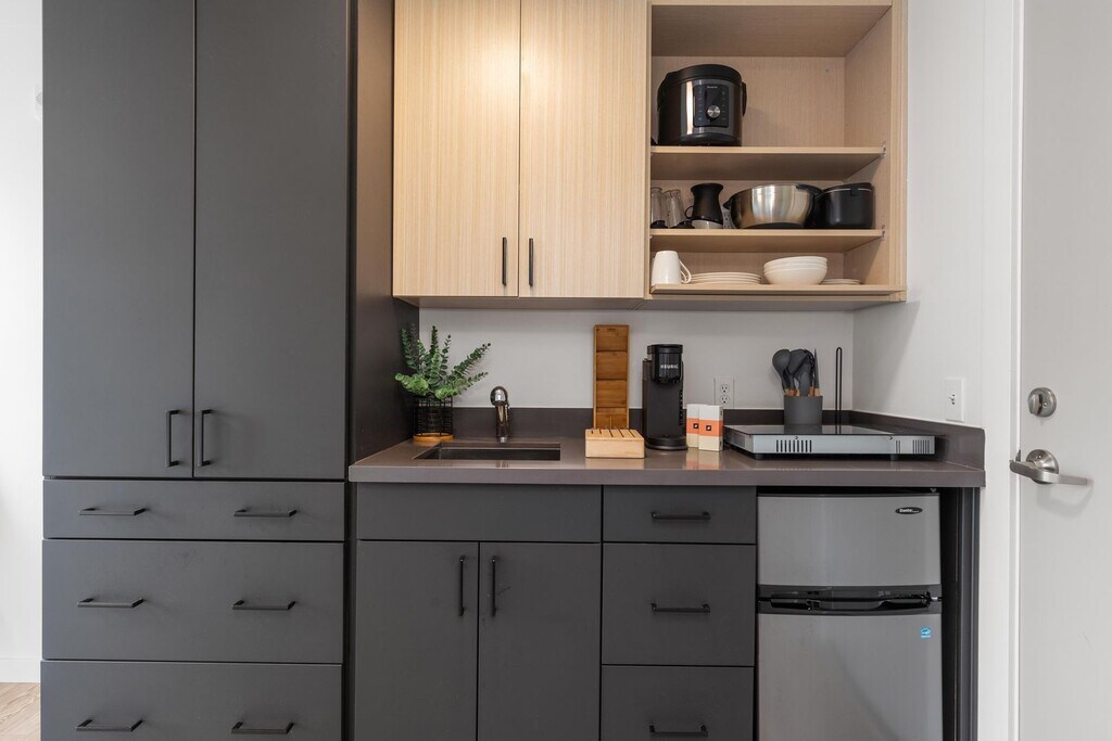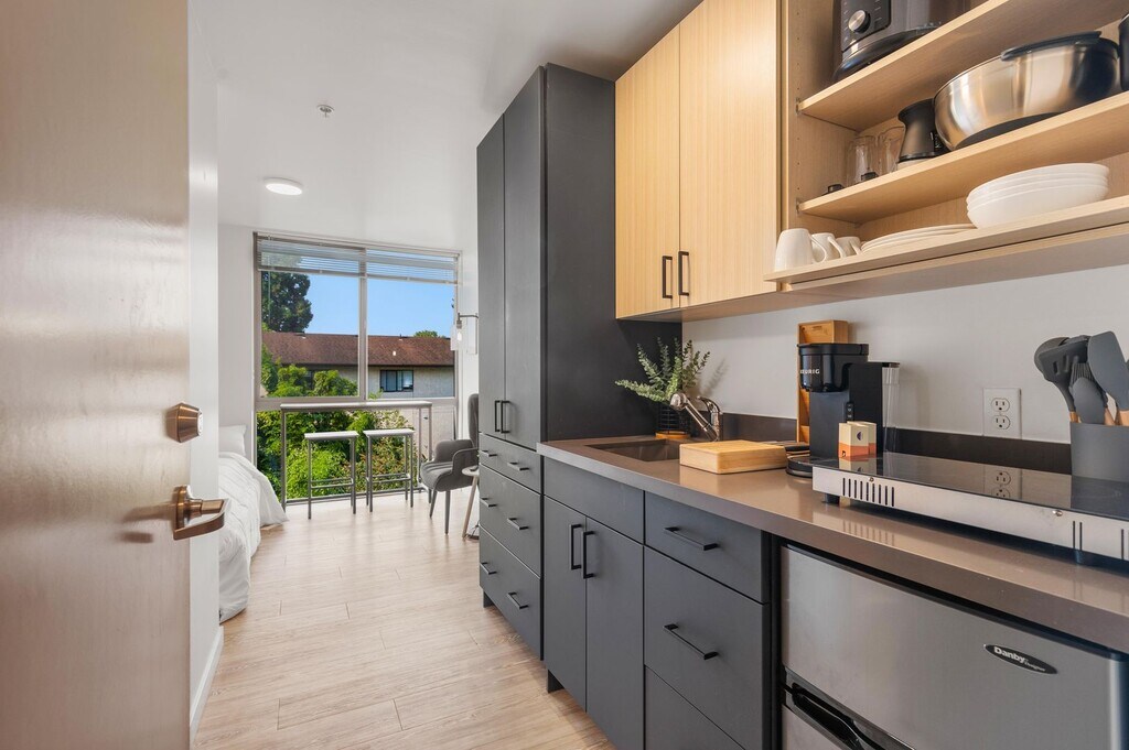 One-month free leasing concession on all units for August! KARSTI APARTMENTS IS A COLIVING COMMUNITY IN BALLARD OFFERING PRIVATE STUDIO APARTMENTS COMBINED WITH NUMEROUS SHARED SPACES DESIGNED TO FOSTER FUN + FRIENDSHIP SHARED SPACES AND AMENITIES With over 3,000 sf of common living space, Karsti was specifically designed to foster community without compromising privacy. Each floor has a huge, pre-stocked chef’s kitchen with stainless appliances, quartz counters, seating, and laundry. The main floor boasts a generous lounge and kitchen for resident events and social gatherings. STUDIO APARTMENTS Your brand-new studio apartment is built with a contemporary design aesthetic and high-end materials. Enjoy quartz countertops, custom cabinetry, stainless appliances, and hardwood-style flooring. Top-floor homes include dramatic lofts with mountain views and custom-built artistic wood railings. NEIGHBORHOOD AMENITIES Karsti Apartments is conveniently located in Ballard near grocery stores, restaurants, and Target. Take a short walk to the brewery district or enjoy some of Seattle’s best nightlife and boutique shops in the heart of Old Ballard & Ballard Avenue mere blocks away. Relax by the water with a 15-minute bus ride to Golden Gardens Park, an 8-minute drive to Green Lake, or a 20-minute walk to Ballard Locks Pard. The D Line express bus right out front will whisk you downtown in 20 minutes.