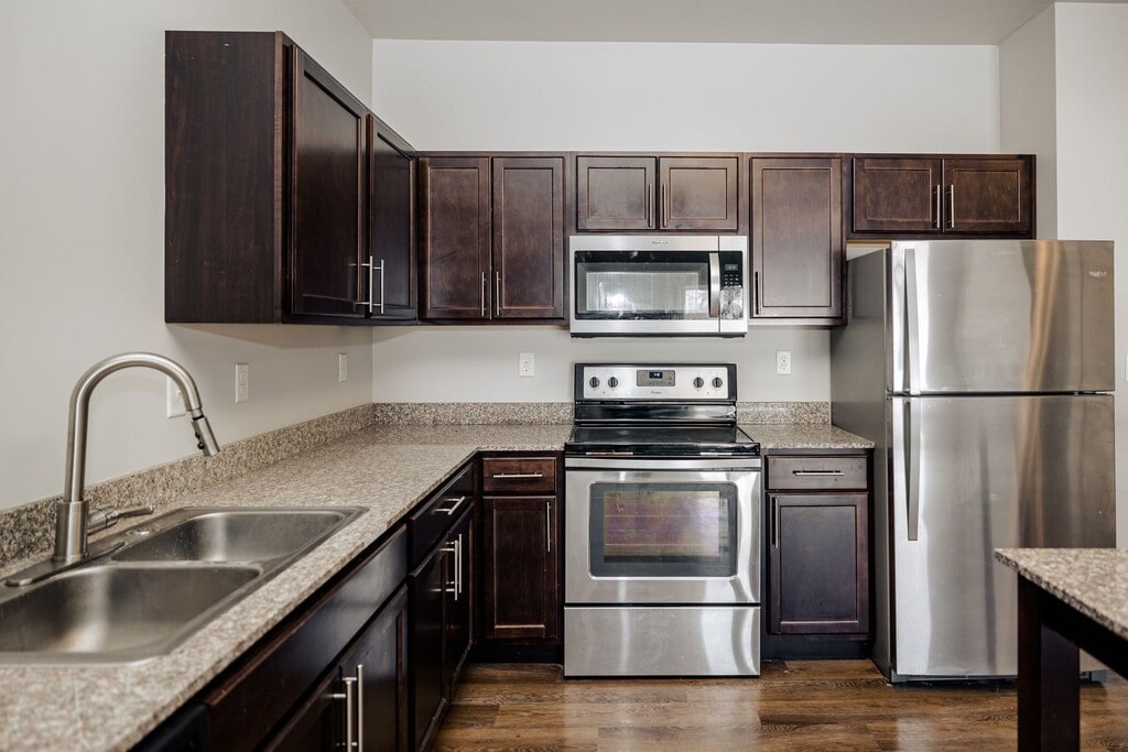 April 9, 2018Misleading amenities. There is NOT instant hot water. Have to wait for quite awhile (wasting water) only to get just very warm. Heating is strange. There is one HVAC unit for both heat and AC, that seems hotel style. 'Fitness Center' is one weight machine, a few free weights and some yoga mats. Very cheap finishes throughout apartment. Peel and stick flooring in laundry room and bathroom that is bubbling up. Laminate flooring in kitchen with hundreds of scratches upon move-in. Stainless steel ...appliances very scratched, dinged, and beat up looking, with smudges that will not come off. Sink in kitchen is very shallow with a faucet that is so low that you cannot fit pans underneath to rinse. Sink full of innumerable scratches from last resident due to poor quality finish. Blinds in bedroom are cheap metal, and ones in living room are cheap plastic. Carpet is very low pile, and low quality. There is no closet for coats, linens etc. There are no racks or any place to hang clothes in laundry room, just the W/D in the room. There is one small closet in bedroom that is not a walk-in. There is no covering or doors for shelves in bathroom. It is just an open rack concept. So everyone can see what you store in your bathroom. I will say internet is fast, but it took almost a week to be able to get online after move-in due to no one checking to make sure it was properly hooked up before a new resident moved in. Apartment overall at move-in was very unclean and in pretty rough shape. And I do not know where the "eco" design comes into play that another site advertises. The one positive: very quiet outside setting that is surrounded by nature. (Deer, hawks, eagles, squirrels, and many varieties of birds.) For the price, I would recommend shopping around in Rochester, for a complex with better quality apartments offering more amenities for the same price as Kascade Place.Leer MásReseña de Apartments.com