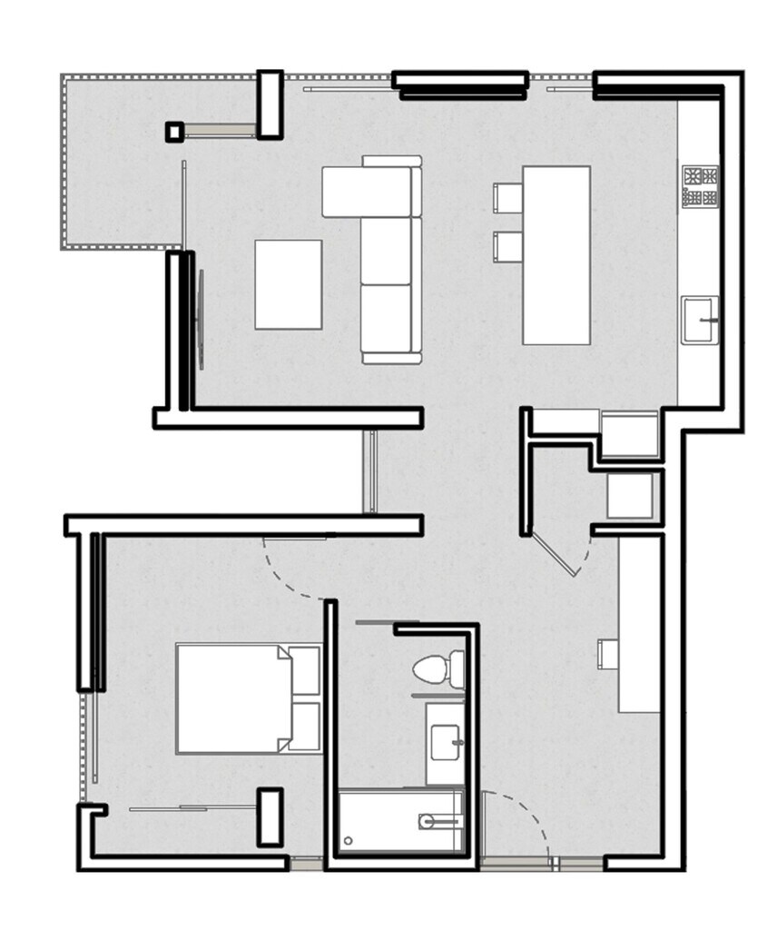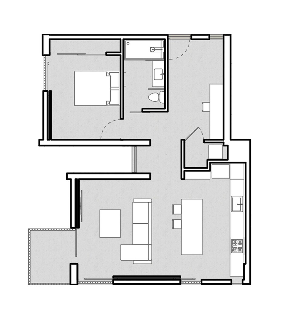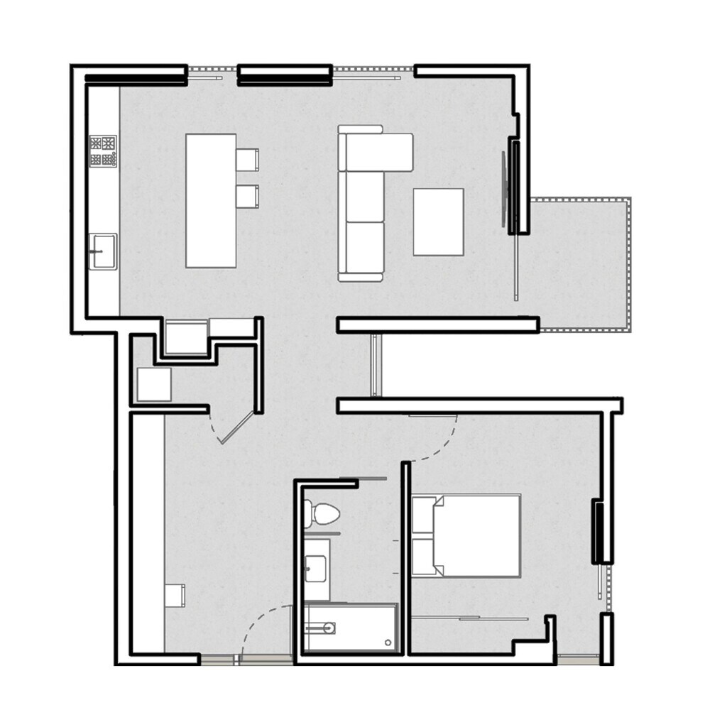 Modelo de apartamento: 1 BR Floorplan EDesde $3,1951 Dormitorio, 1 Baño, 736 sq ftDisponible AhoraPlanosFotos![]()