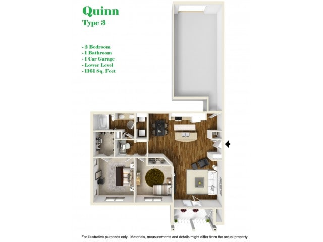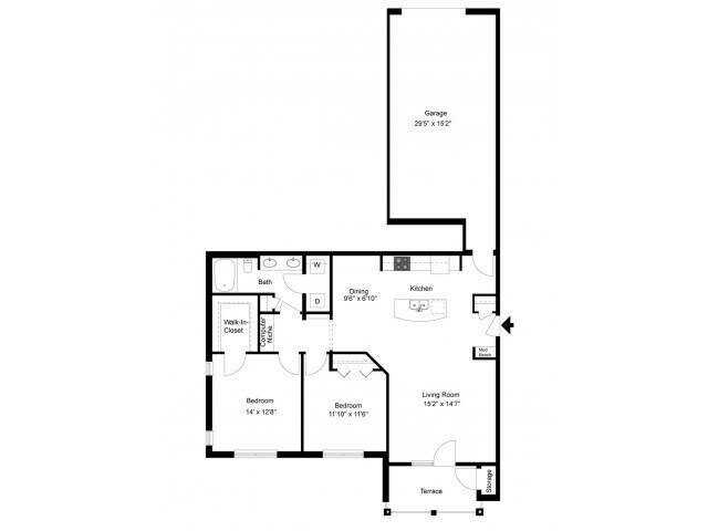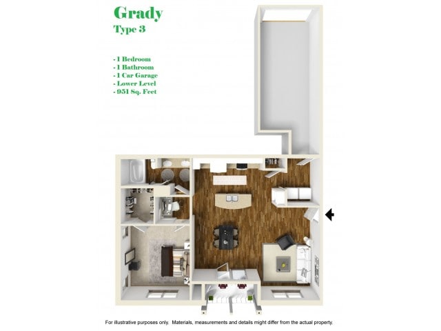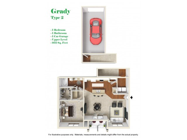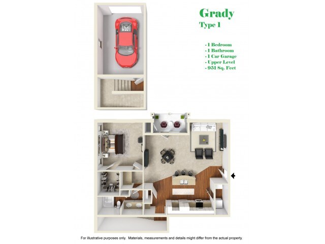 Modelo de apartamento: Grady1$1,5701 Dormitorio, 1 Baño, 951 sq ftNo Disponible![]()
