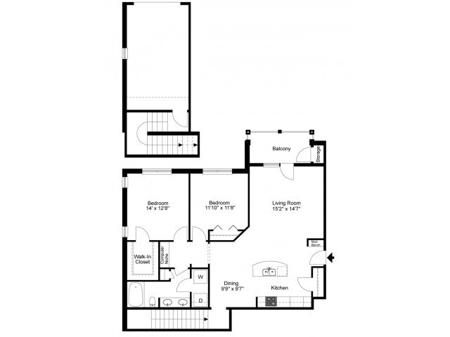 1 Dormitorio, 1 Baño, 951 pies²Galería del Modelo