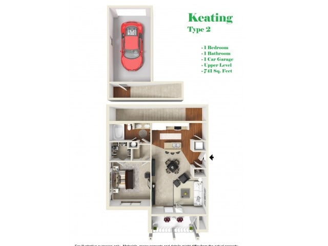 Modelo de apartamento: Keating1$1,3751 Dormitorio, 1 Baño, 741 sq ftNo Disponible![]()