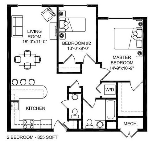 Fecha Disponibilidad Unidad Pies² No Disponible Two Bedroom 855 pies² Modelo de apartamento: Two Bedroom2 Dormitorios, 1.5 Baños, 855 sq ftNo Disponible![]()