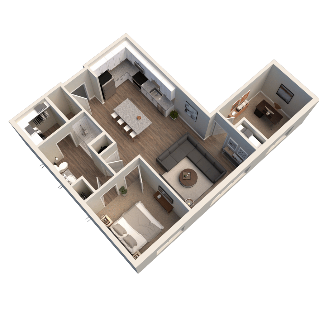 Modelo de apartamento: 1x1 Phase 1 778 sq ftDesde $1,4341 Dormitorio, 1 Baño, 778 sq ftDisponible Ahora![]()