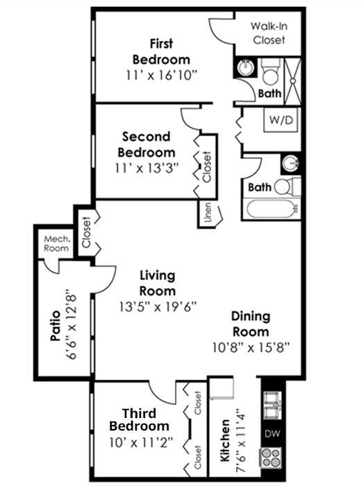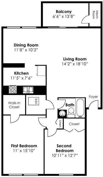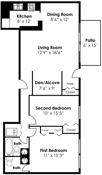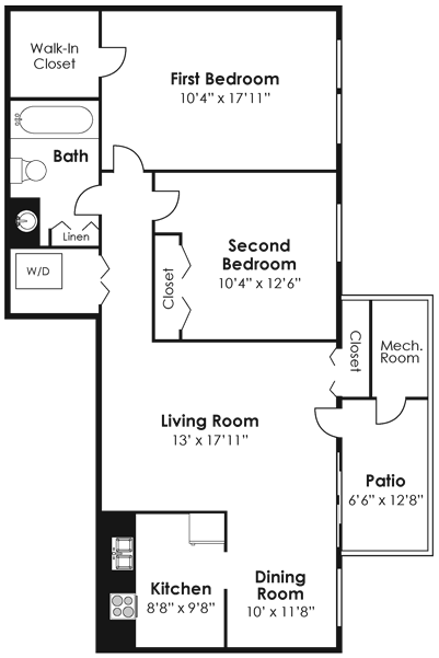 2 Bedroom 1.5 Bath - Renovated - Plano 5 2 Bedroom 1.5 Bath Alcove - Renovated