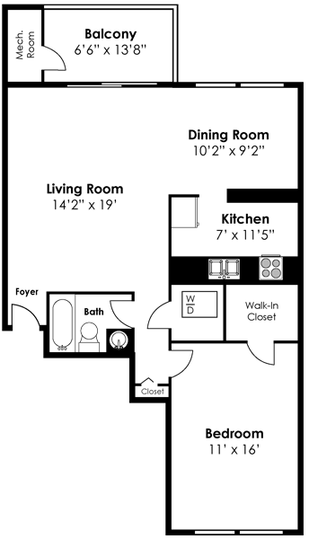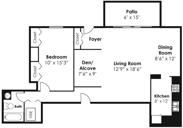 1 Bedroom 1 Bath with Alcove - Renovated - Plano 1 ![]()