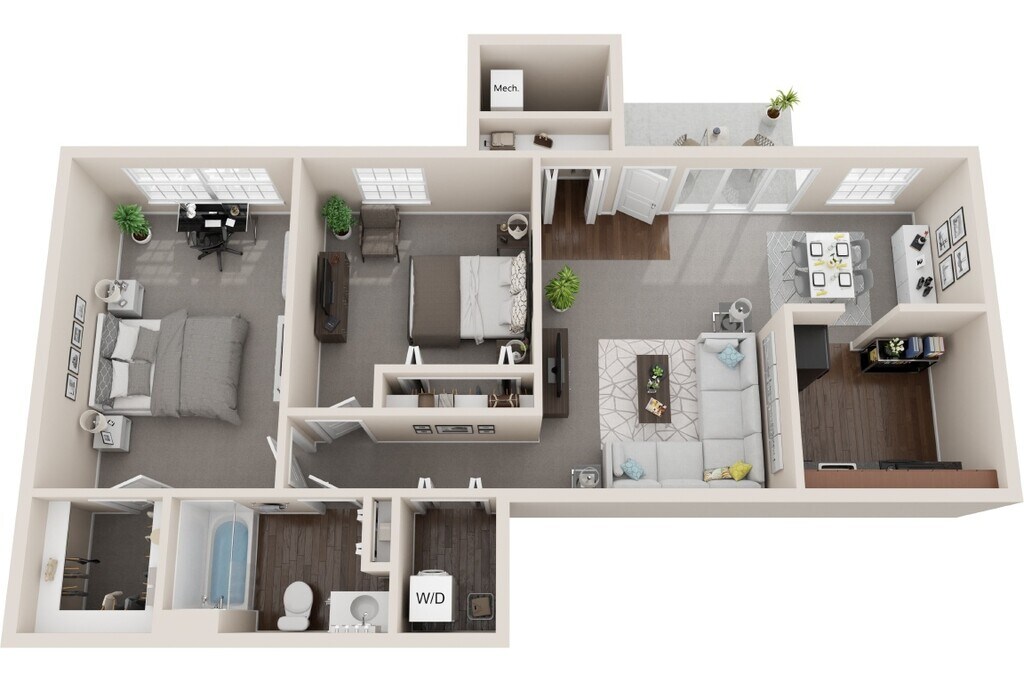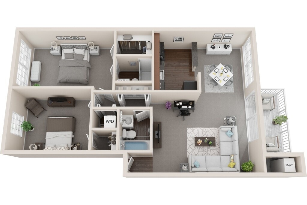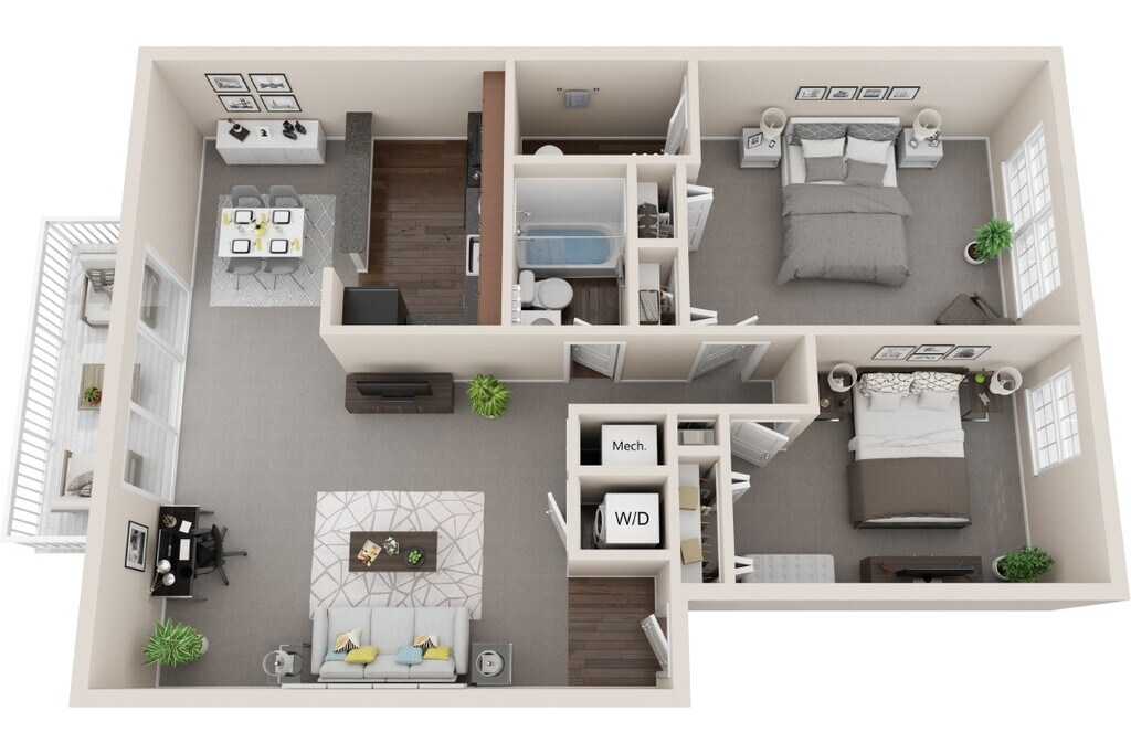 2 Dormitorios, 1 Baño, 723 pies²Galería del Modelo