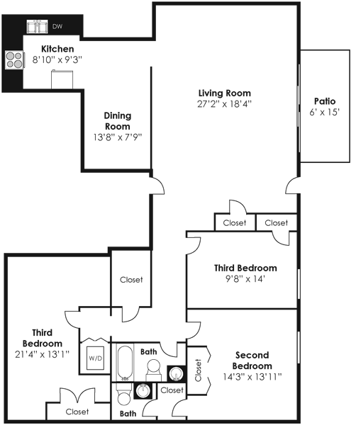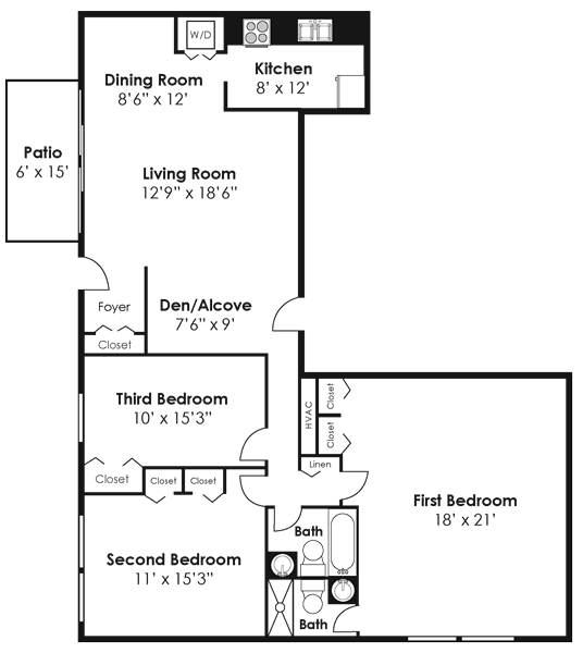 Llámenos hoy para conocer las opciones de precio de estudio a 3 dormitorios en Kenilworth at Charles Apartments