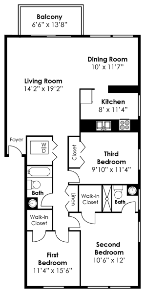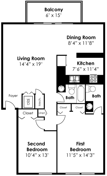 Modelo de apartamento: 2 Bedroom 1 Bath - RenovatedLlame para Precios2 Dormitorios, 1 Baño, 988 sq ftNo Disponible![]()