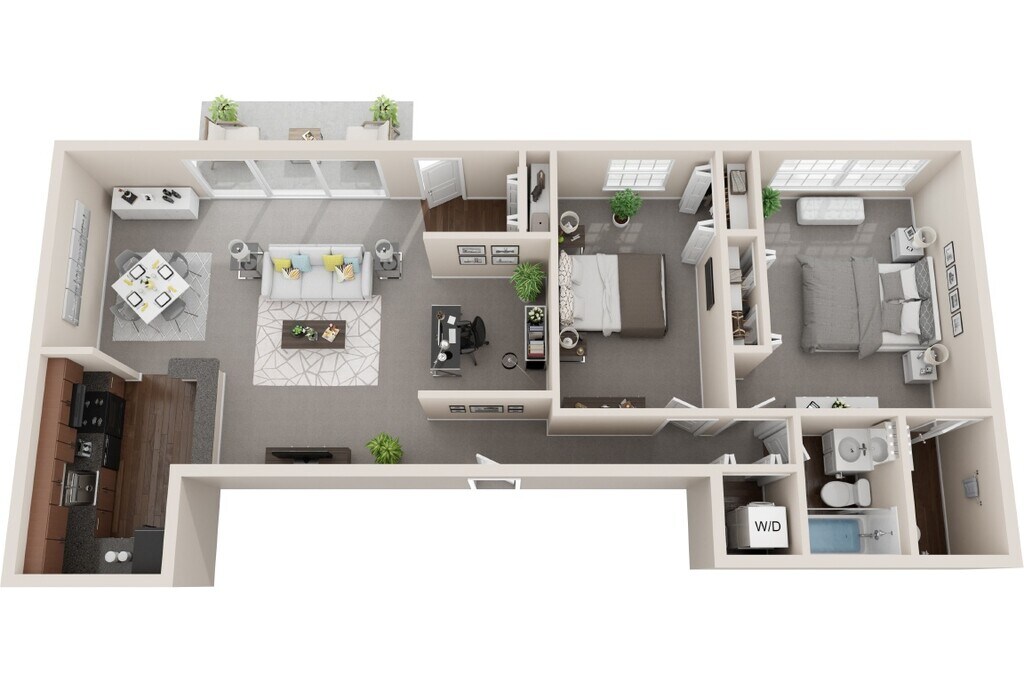 2 Dormitorios, 1 Baño, 988 pies²Galería del Modelo