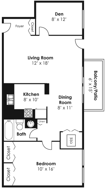 Modelo de apartamento: 1 Bedroom 1 Bath Dining and Den - RenovatedLlame para Precios1 Dormitorio, 1 Baño, 861 sq ftNo Disponible![]()