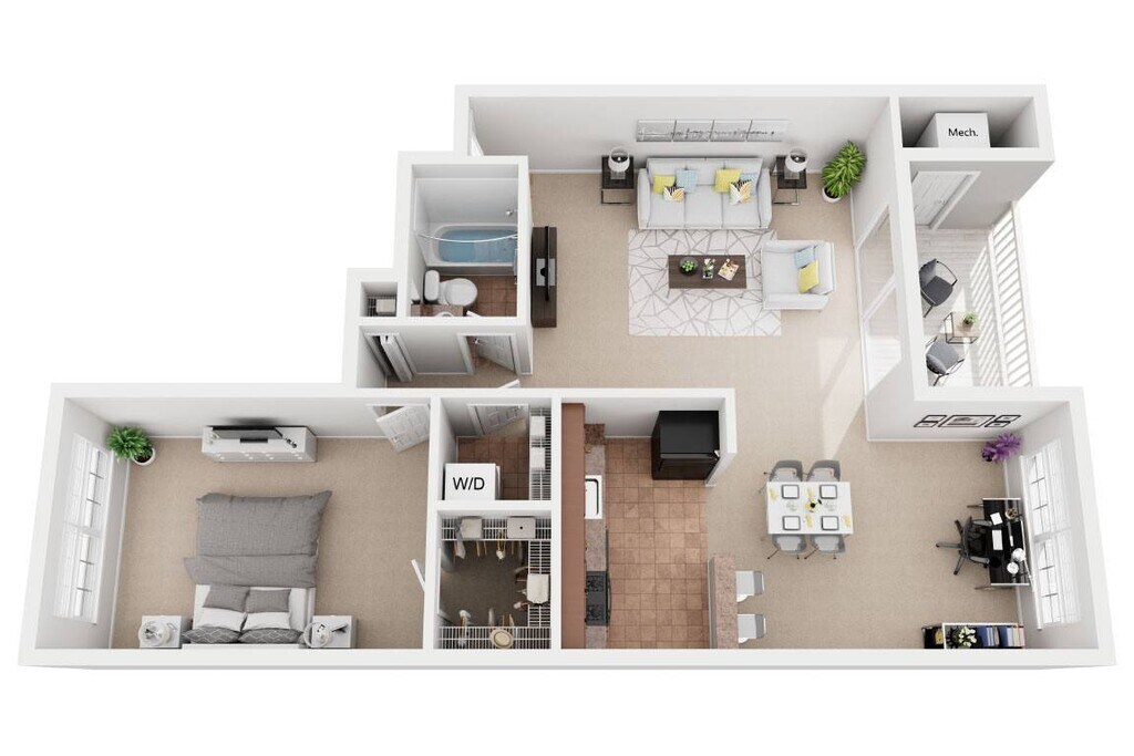 1 Dormitorio, 1 Baño, 689 pies²Disponible AhoraGalería del Modelo